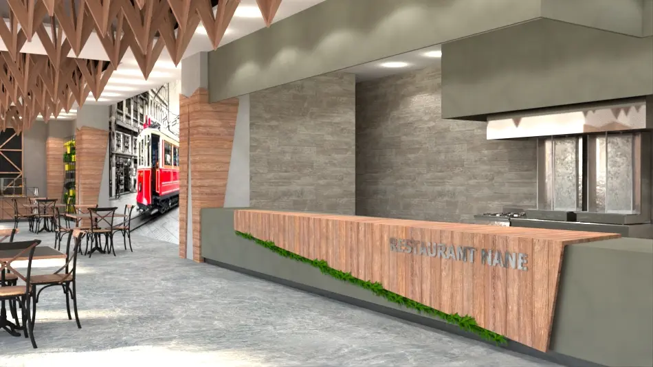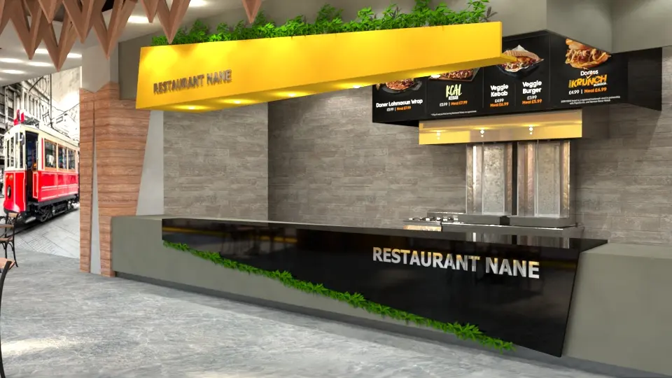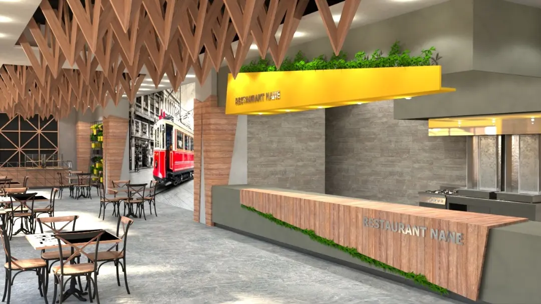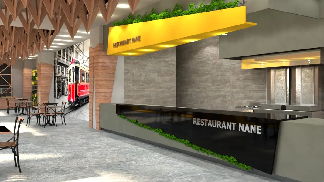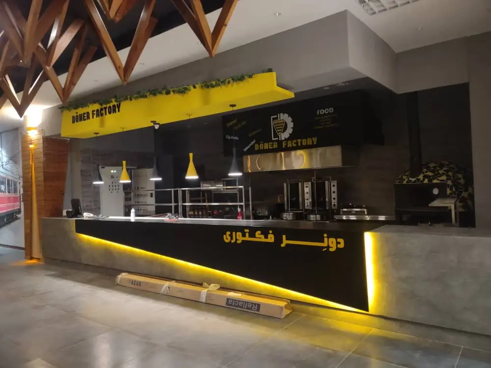 طراحی و اجرای دکور رستوران دونرفکتوری واقع در بازار پارسیس جزیره کیش