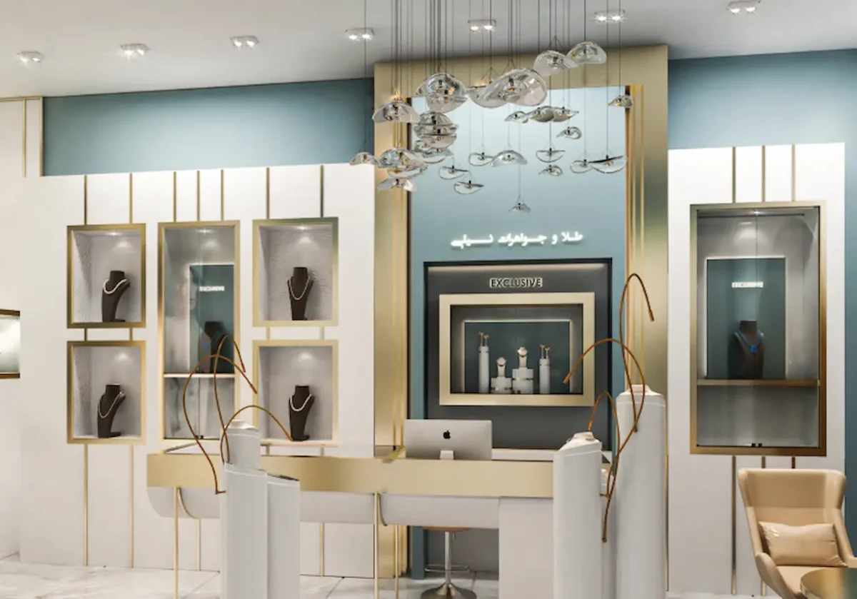 طراحی و اجرای دکوراسیون داخلی غرفه جواهرات نیلی