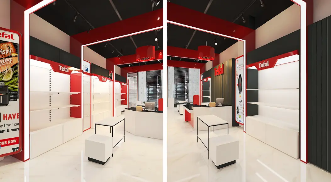 طراحی دکوراسیون داخلی غرفه برند تفال مجموعه میکامال جزیره کیش