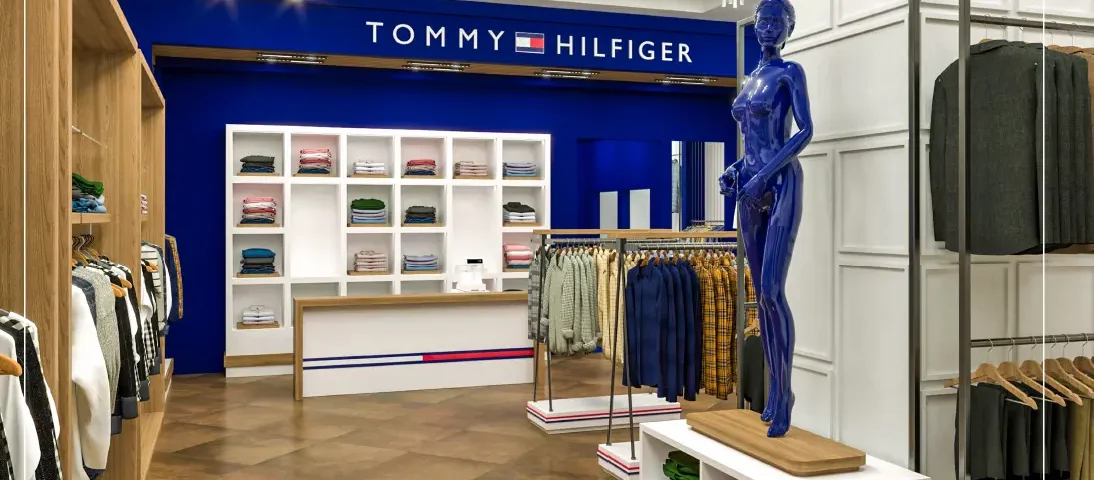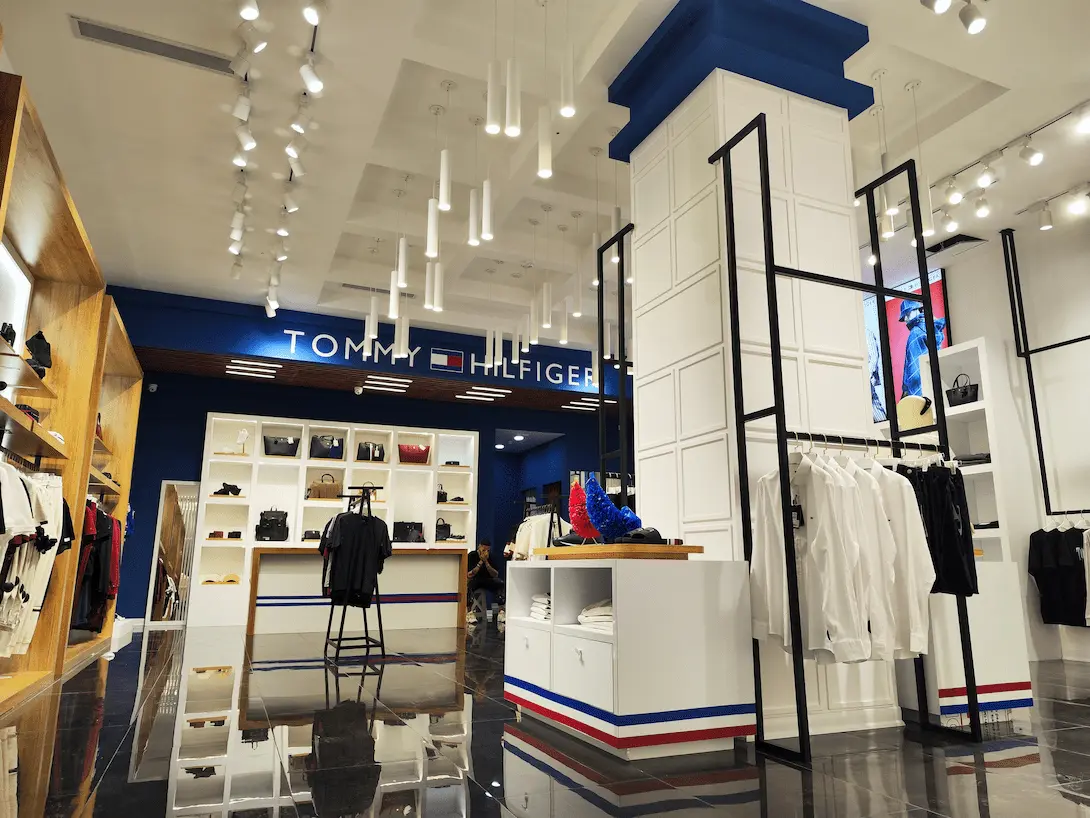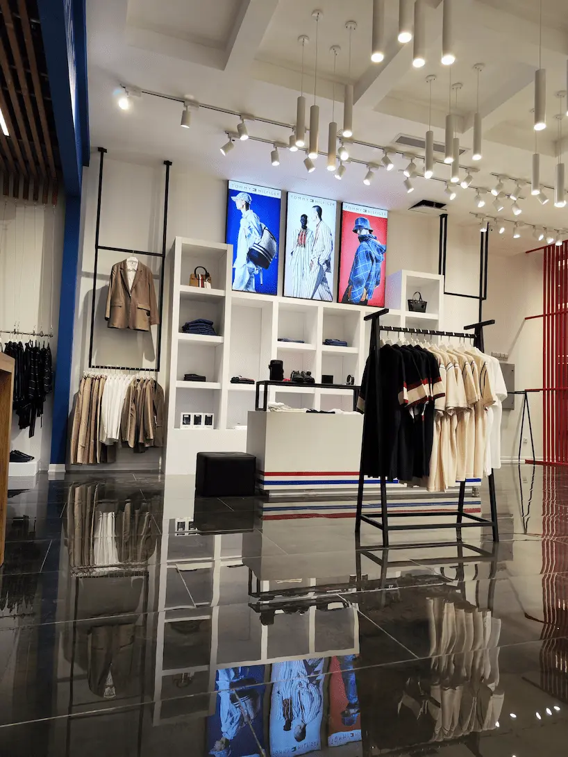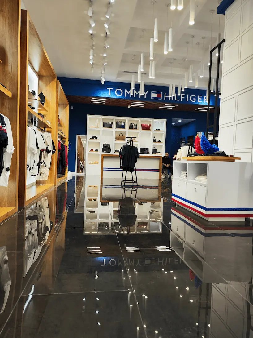 طراحی و اجرای دکور برند تامی هیلفیگر مجموعه تجاری میکامال جزیره کیش